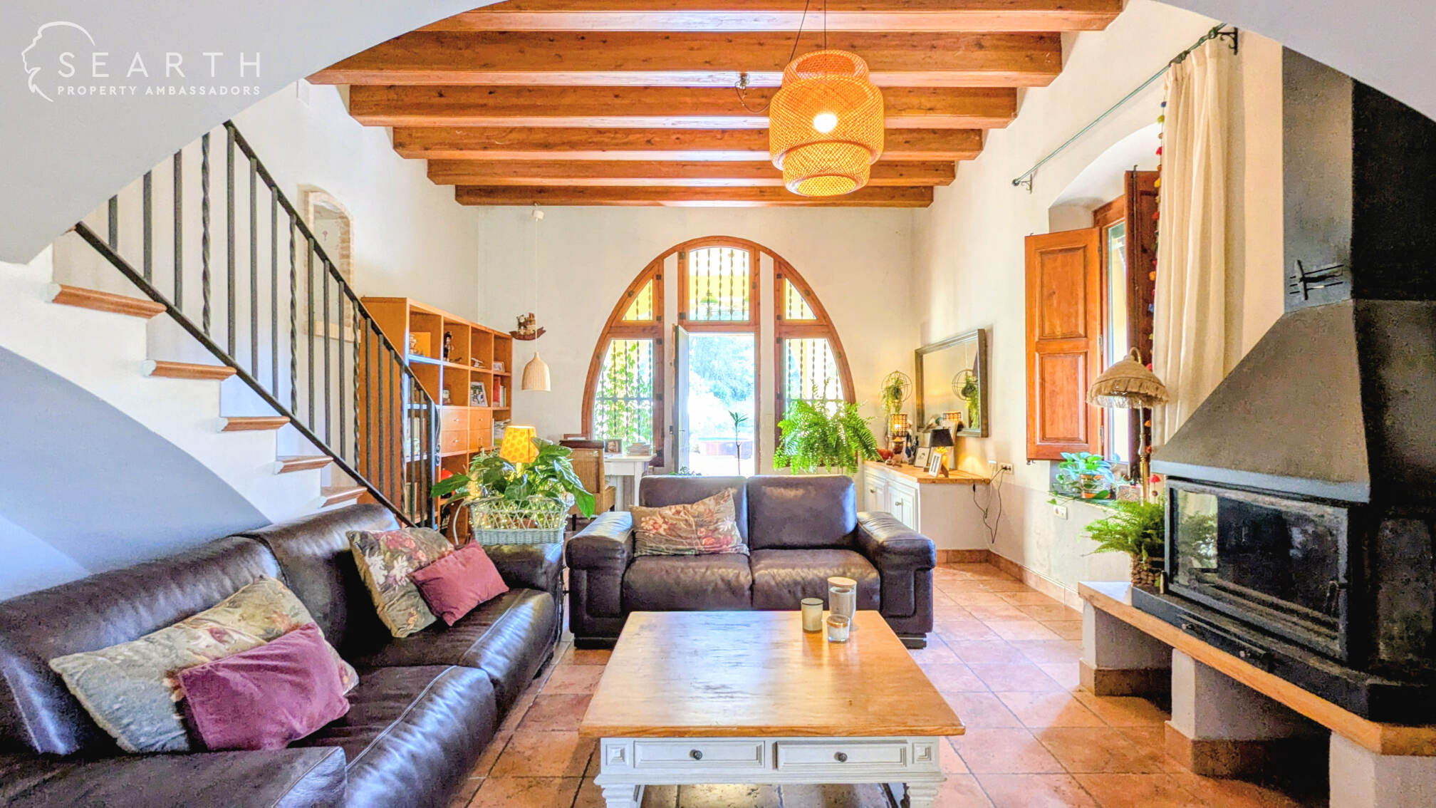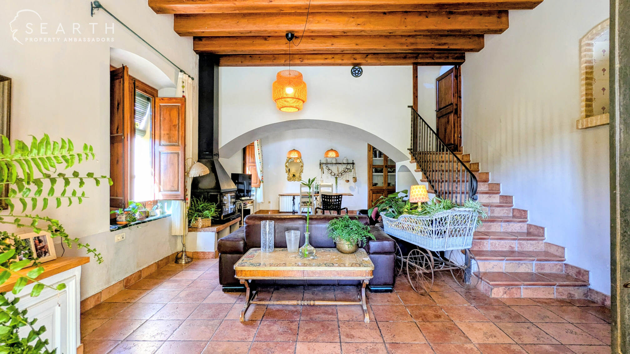 There’s also a 100 m² guest annex, currently used as a learning and equestrian centre for children, complete with a kitchen, dining area, and two bathrooms.Through an impressive wrought-iron entrance, you enter a spacious living room with a fireplace, which connects to a bright open area currently used as a communal space.